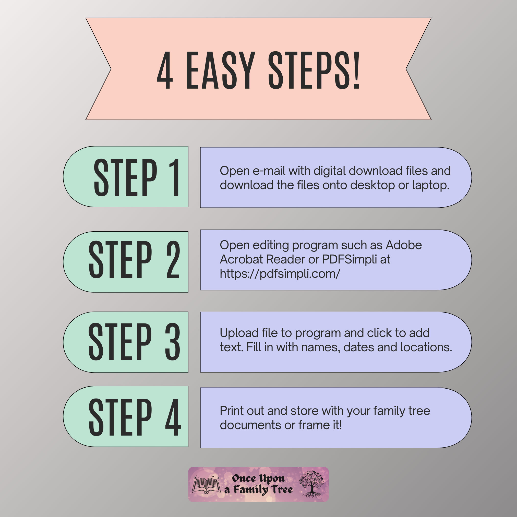 Family Tree Pedigree Chart 4 Generations Digital Printable