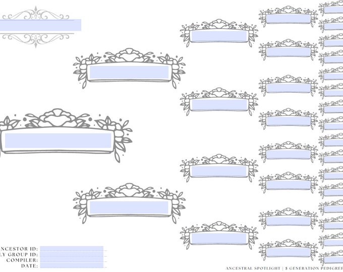 5 Generation Pedigree Chart Digital Template Downloadable Printable PDF