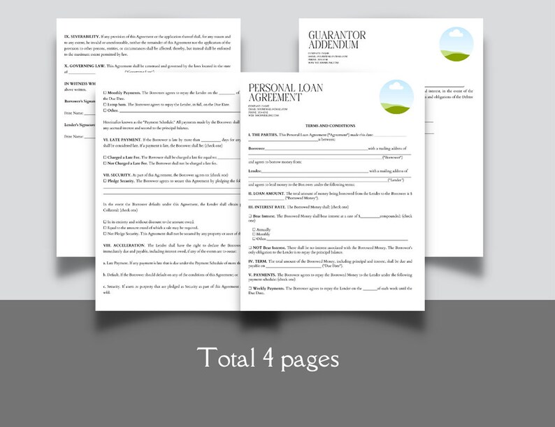 Editable and Printable Personal Loan Agreement Template Personal Loan