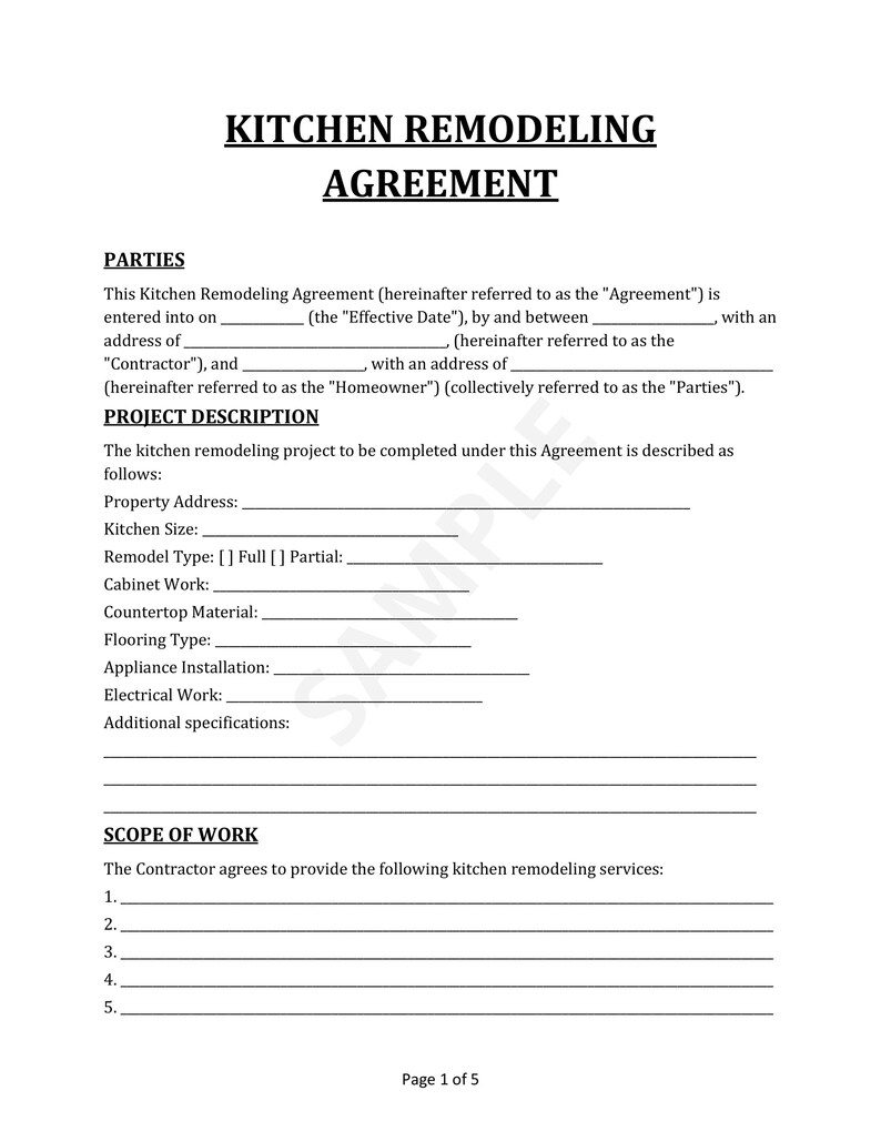 Kitchen Remodeling Agreement Template Editable Renovation Contract