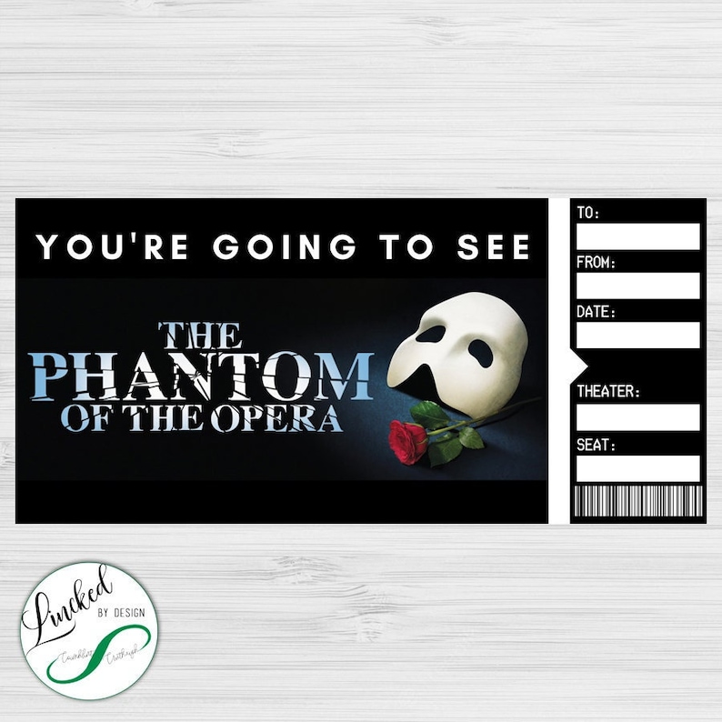 Phantom of the Opera Ticket Printable Surprise Gift Reveal Etsy