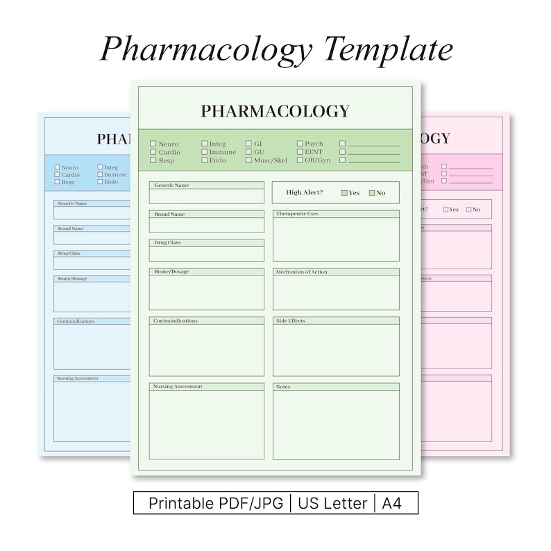 Printable Pharmacology Template Drug Card Template Pharmacology