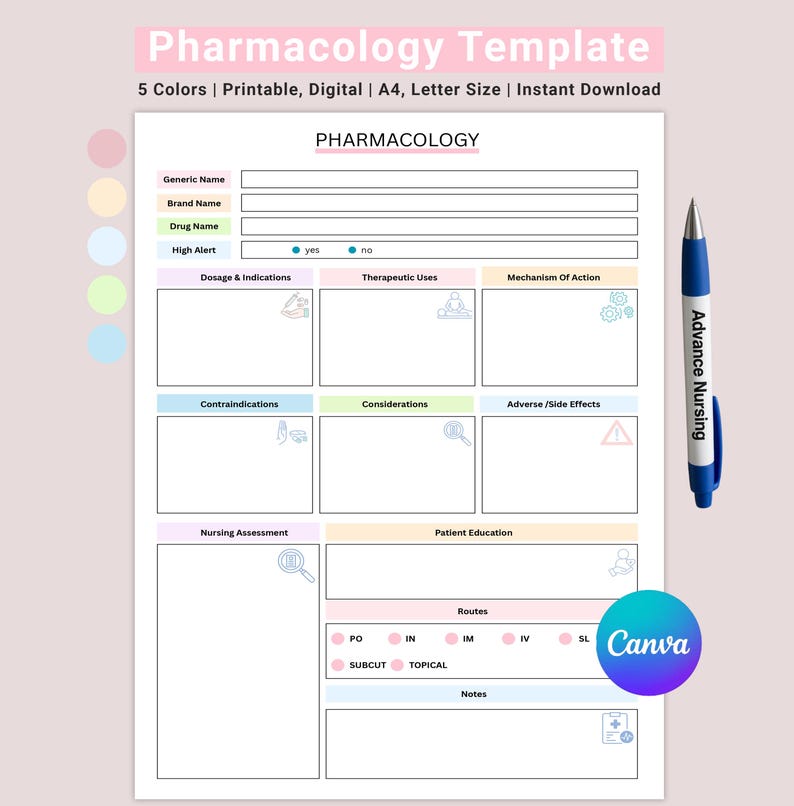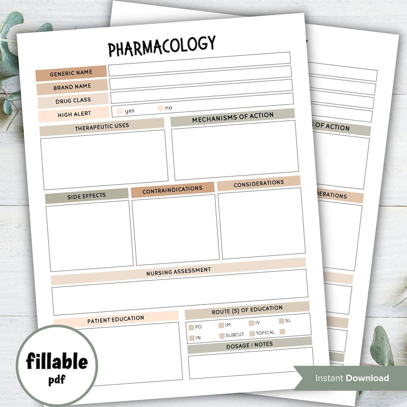 Editable Pharmacology Study Sheet for Nursing Students study Guide