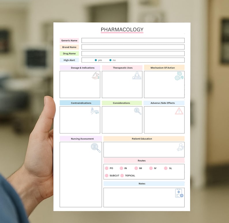 Pharmacology Template: Minimalist Nursing School Study Guide (A4/US