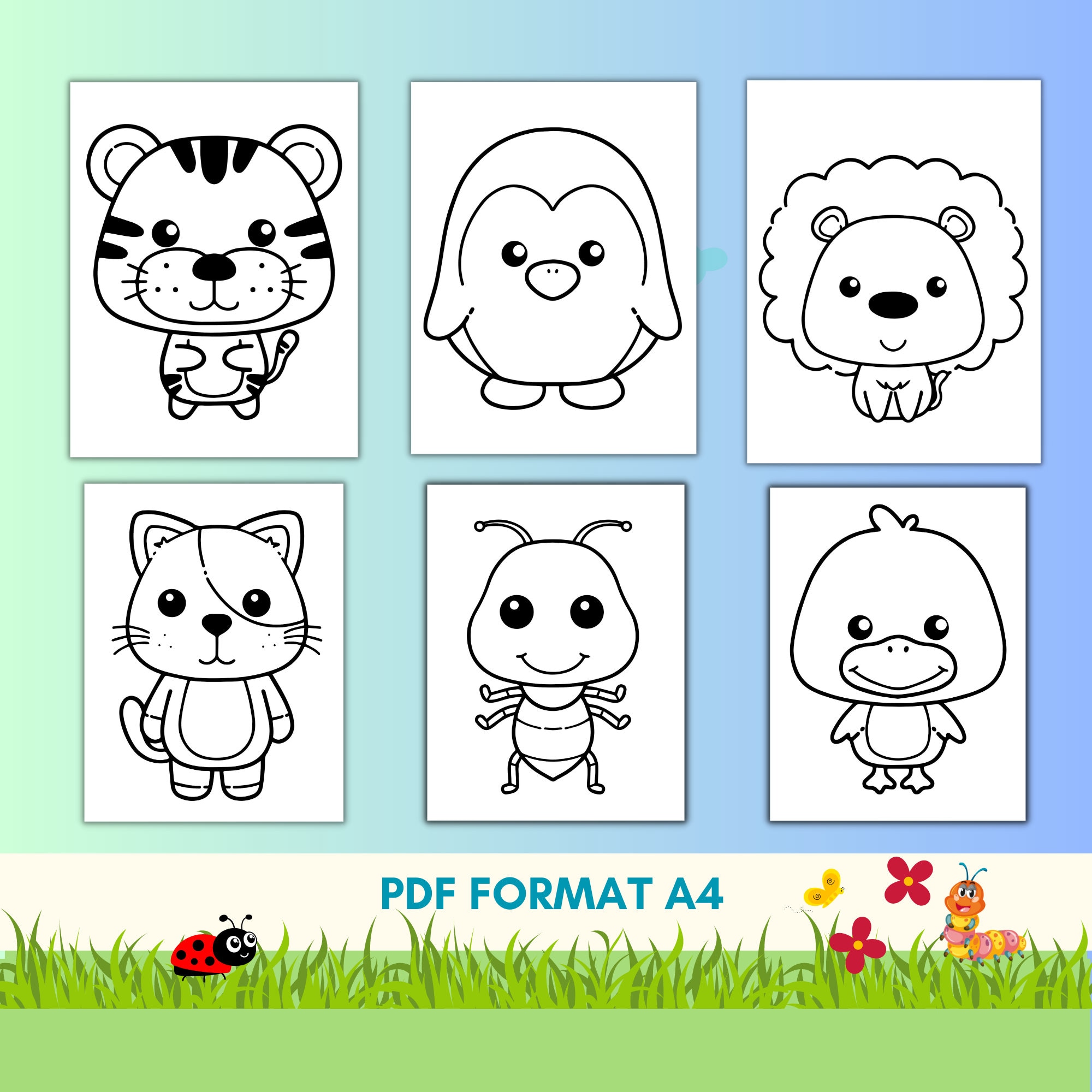 Printable Animal Coloring Pages for Kids Instant Download Cute