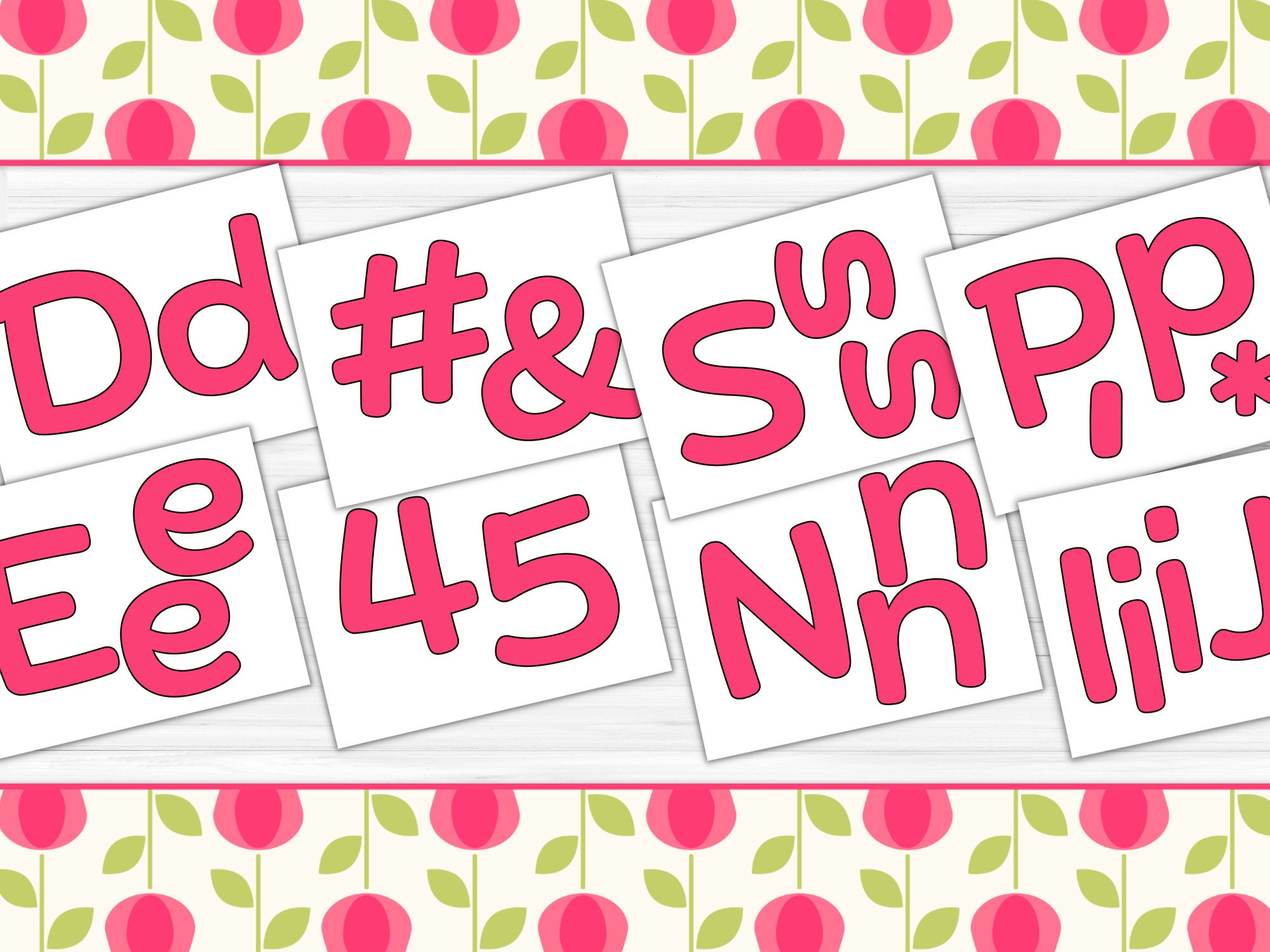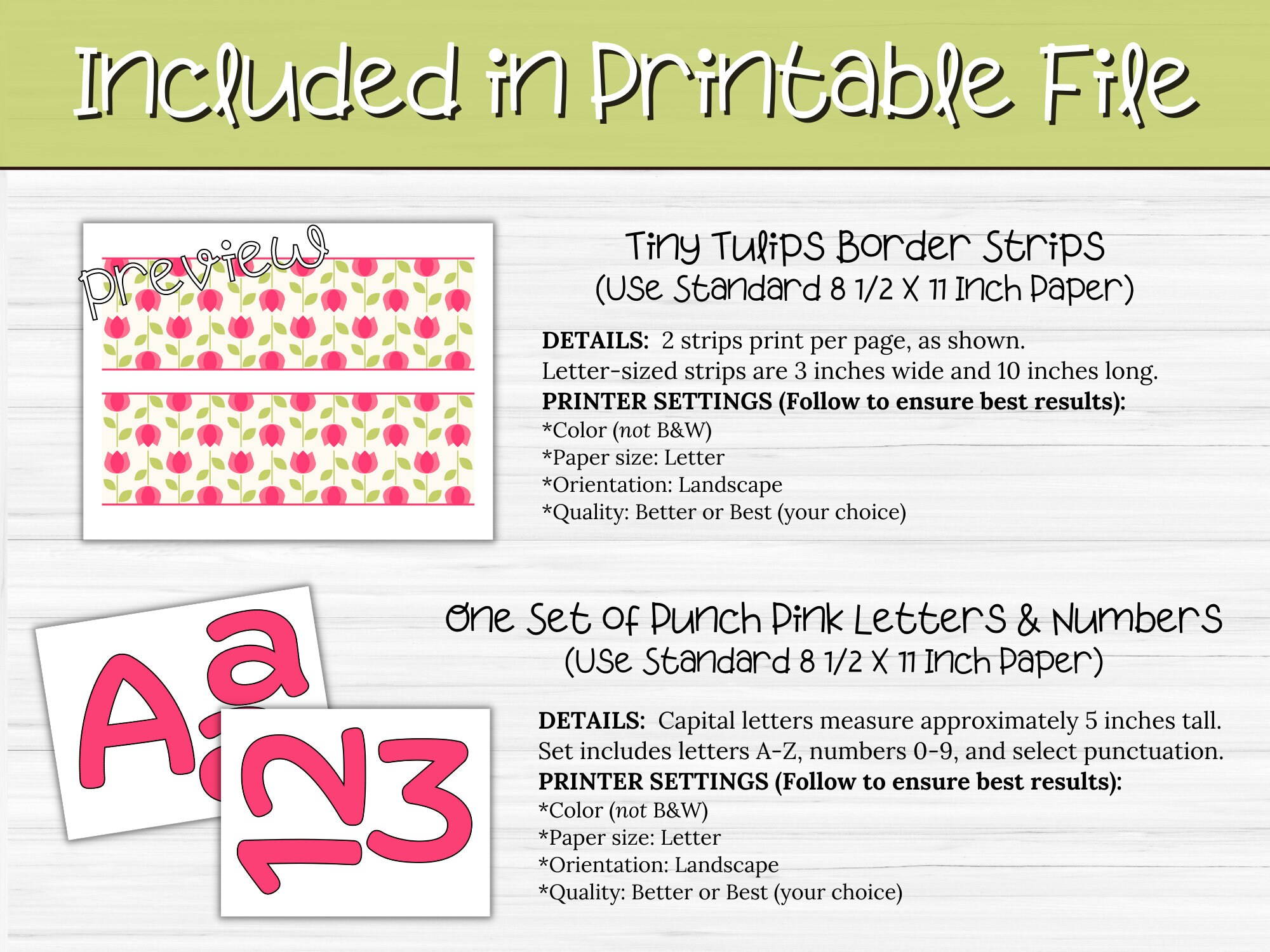 Floral Bulletin Board Border Letters Set Pink Tulip Pattern Printable