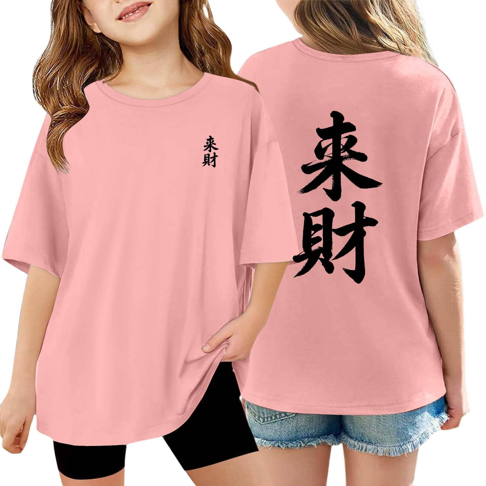 Curuila Children Girls T Shirt Casual Loose Fit Short Sleeve Crew Neck