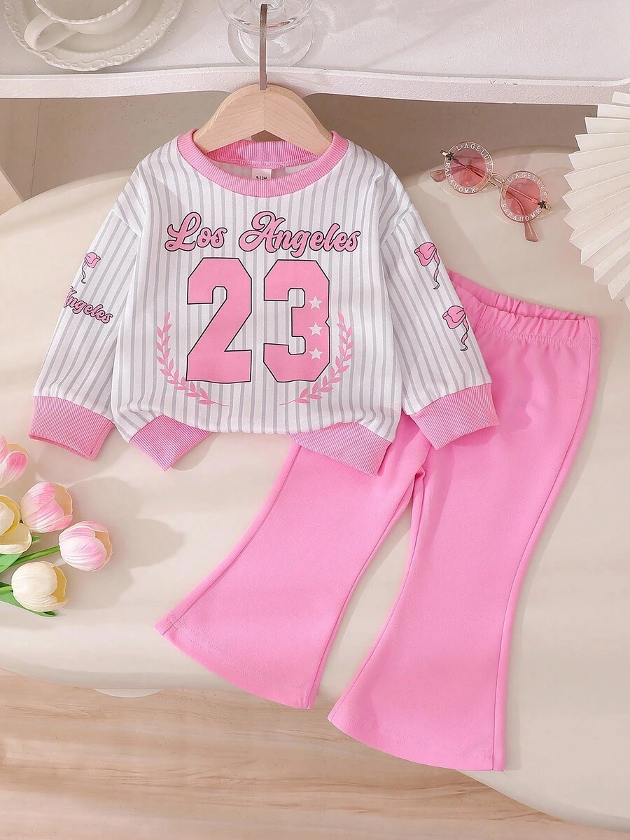 2pcs/Set Kids Baby Girls Fashion Round Neck Pink White Letter