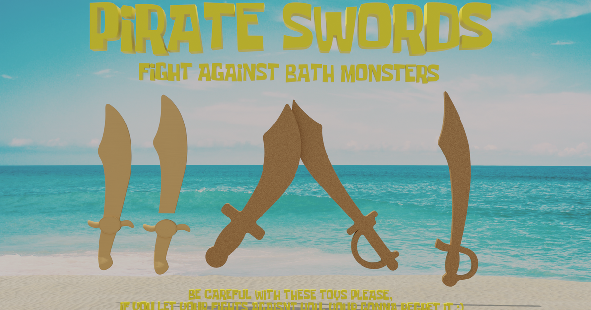 Pirate Swords Print In Place (4 Different models various sizes) by