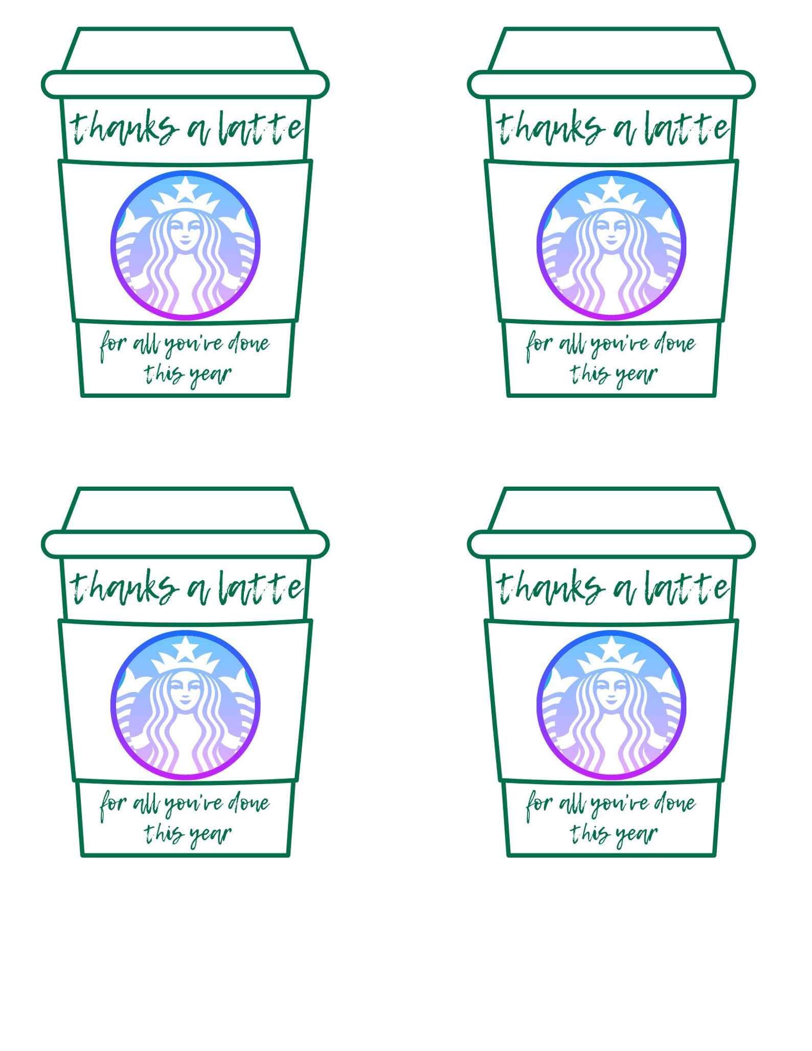 Thanks A Latte Printable Tag SVG PNG PDF Instant Digital Download Gift