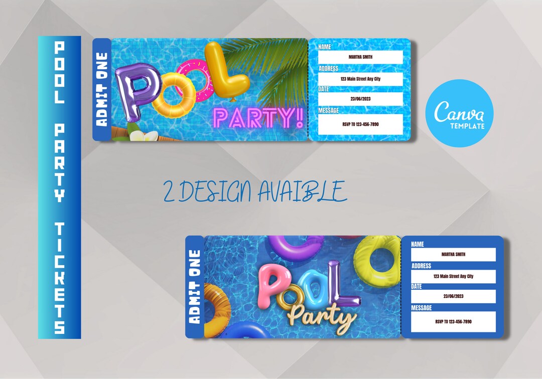 Pool Party Printable Template Customizable Ticket Design for a
