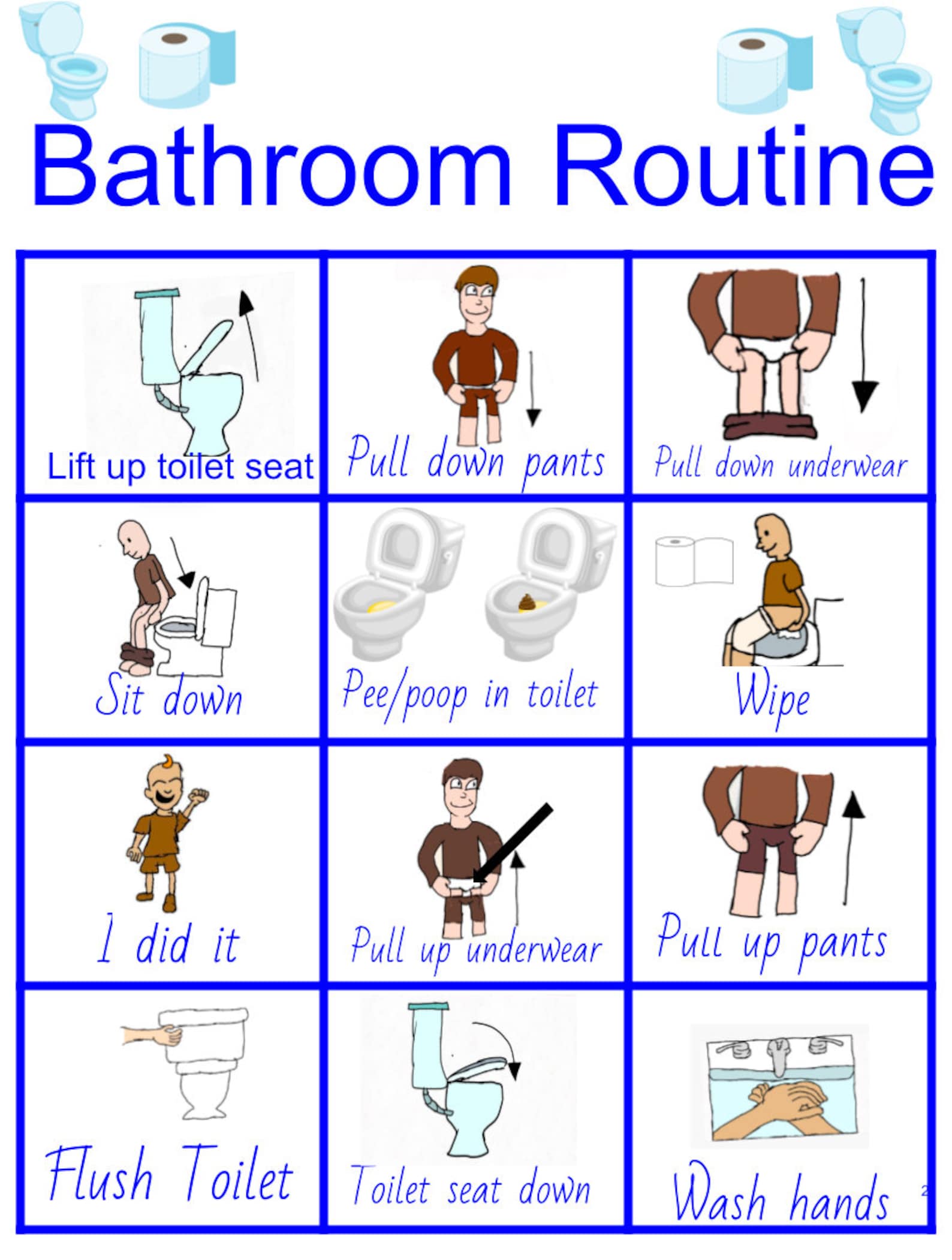 Step by Step Bathroom Routine and Potty Training Chart and Cards