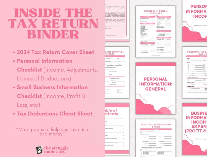 2024 Tax Return Binder: Personal Business Tax Organizer (digital