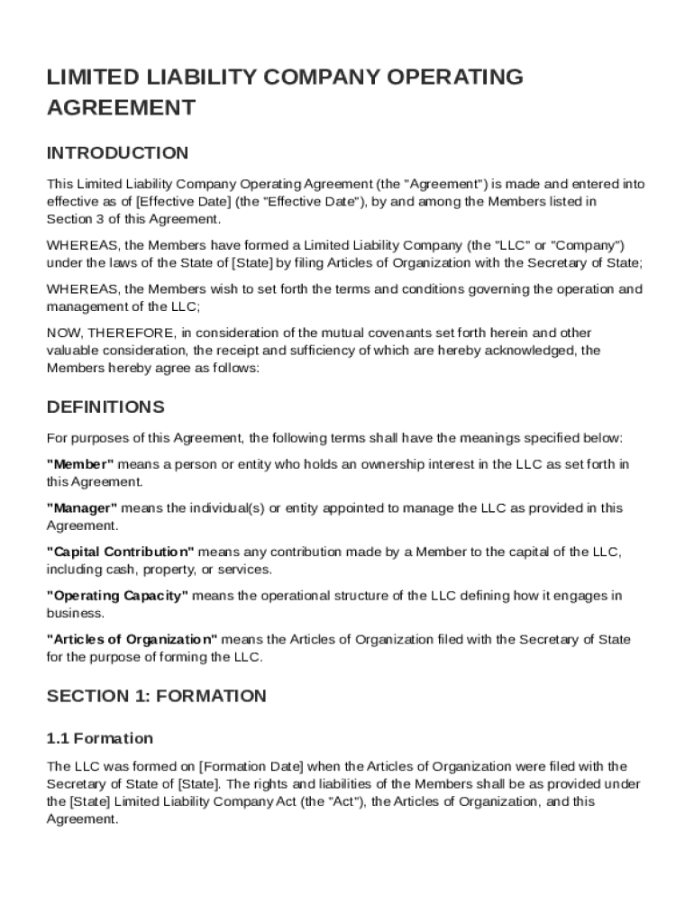Organizational LLC Agreement Template: Fill out sign online DocHub