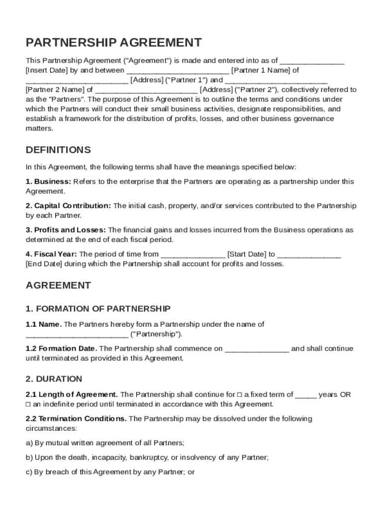 Partnership Document Agreement Template: Fill out sign online DocHub