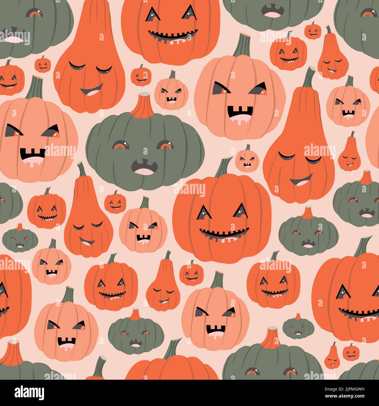 Pumpkin Emotions Seamless Pattern on a Pink Background Aphids