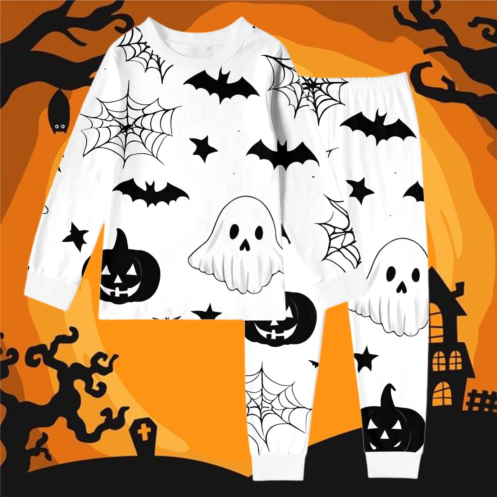 Boys Pajama Set Kids Halloween Pajamas Pumpkin Ghost Print Long Sleeve