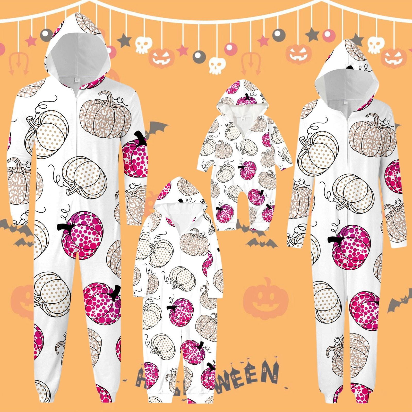 Halloween Pjs Sets Pumpkin Print Pajamas Hoodies Onesies Loungewear