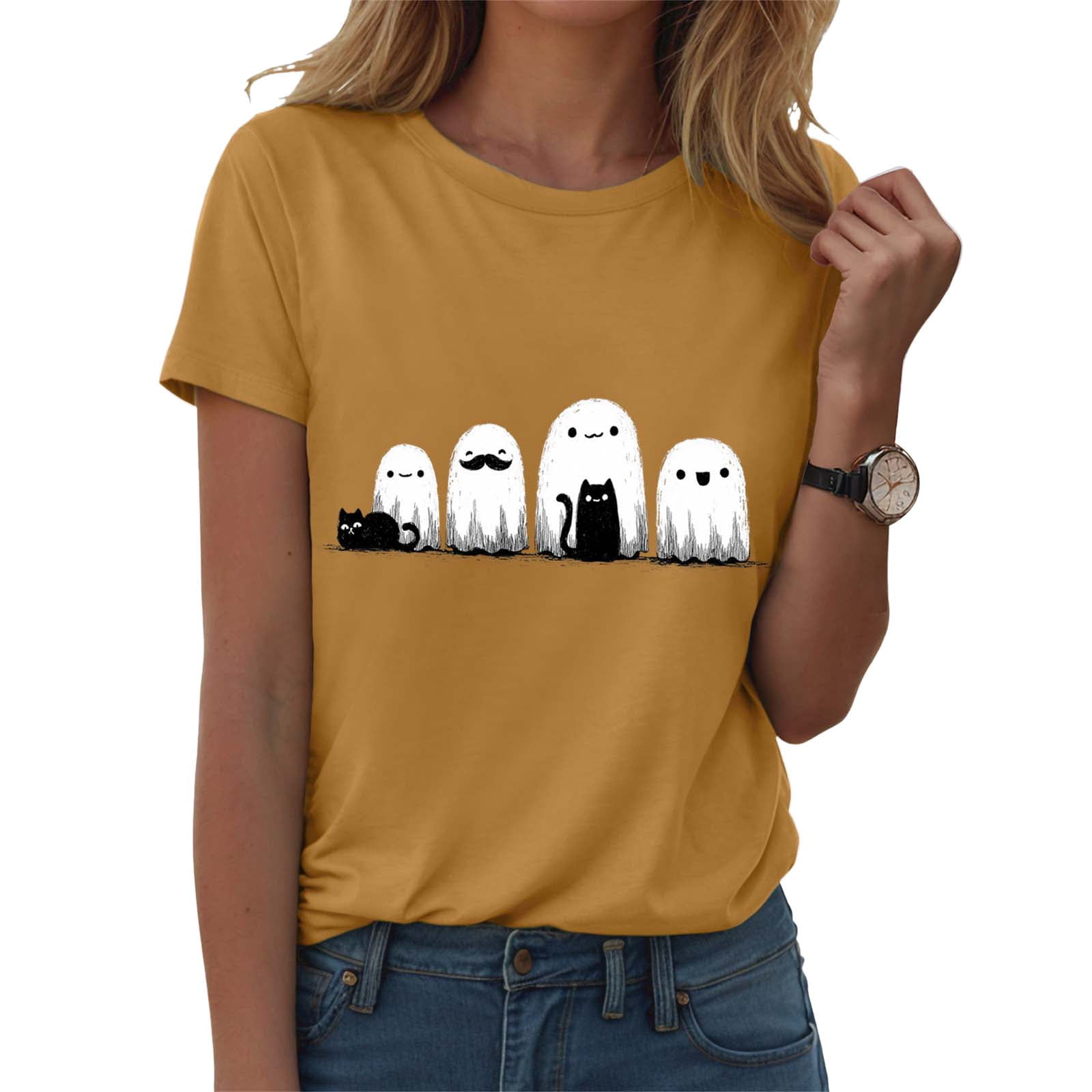 adviicd Autumn Halloween Shirt for Women Cute Ghost and Pumpkin Print