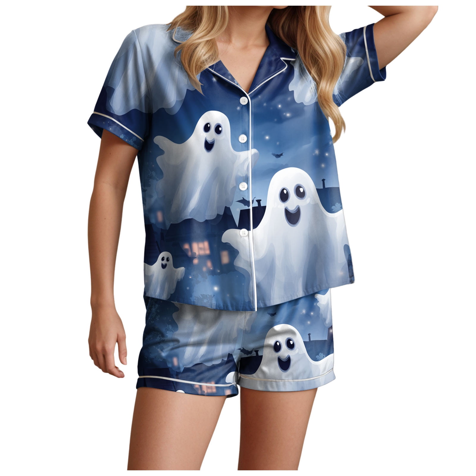adviicd Women #39 s Ghost Pumpkin Print Pajama Set 2 Piece Button Up