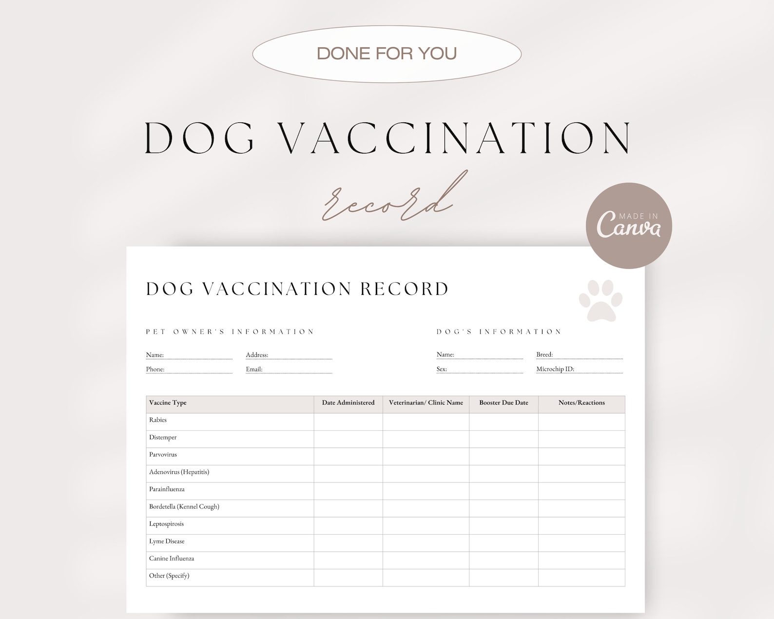 Puppy Vaccination Record Printable