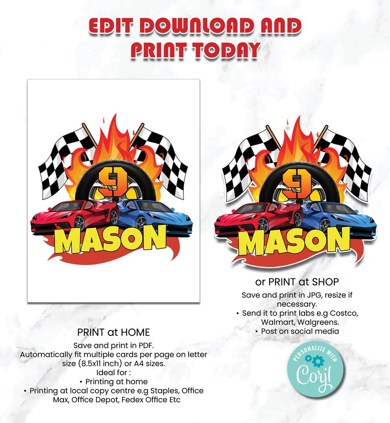 Printable Race Car Cake Topper Racing Car Centerpieces Etsy