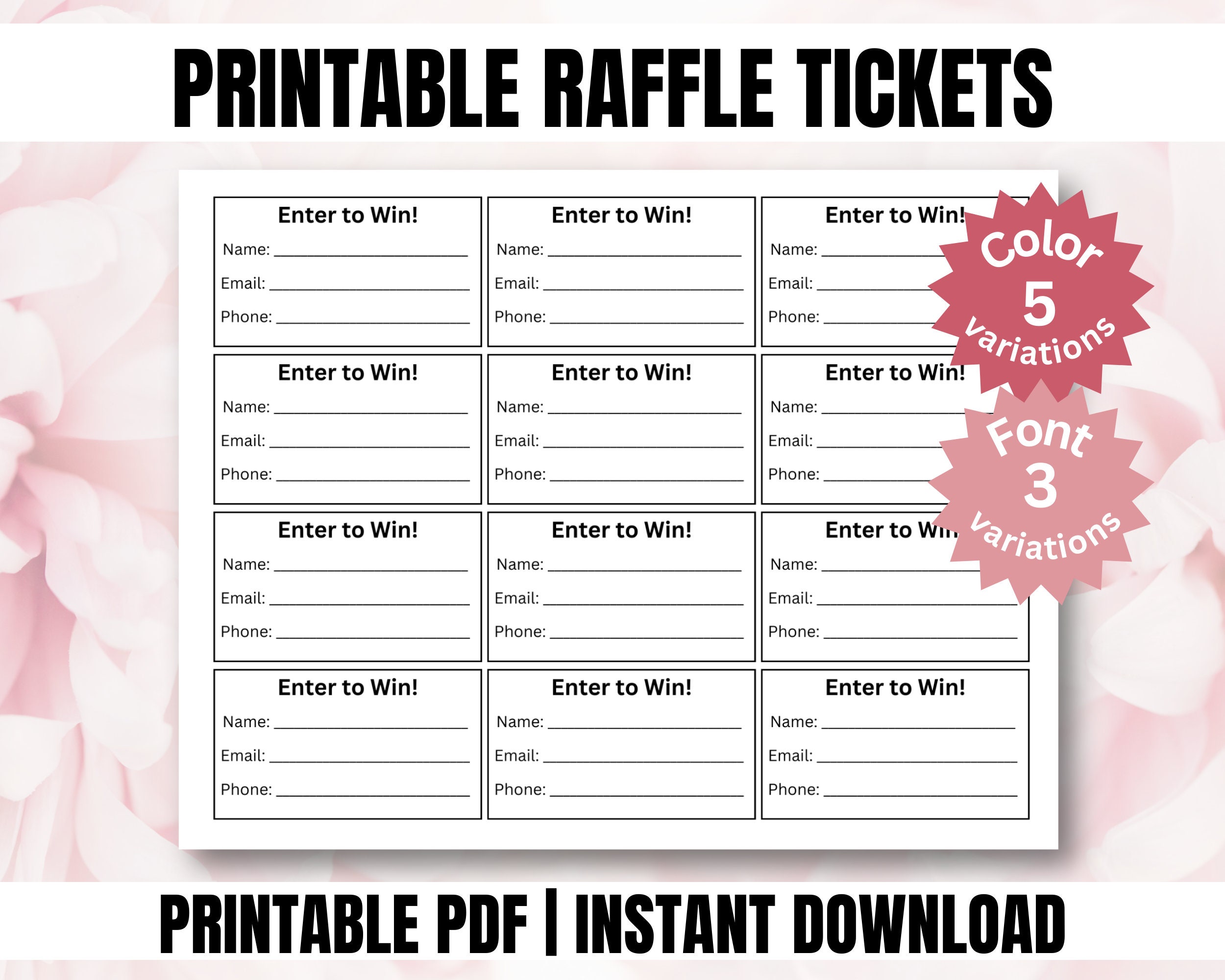 Printable Raffle Tickets (12 Tickets) Instant Download Etsy