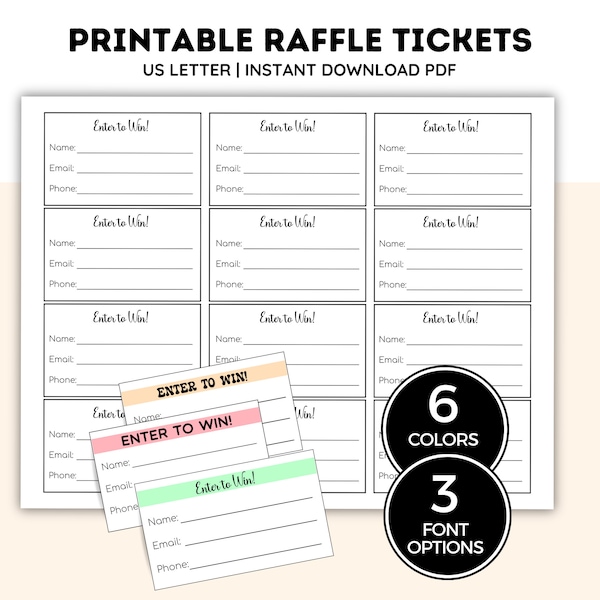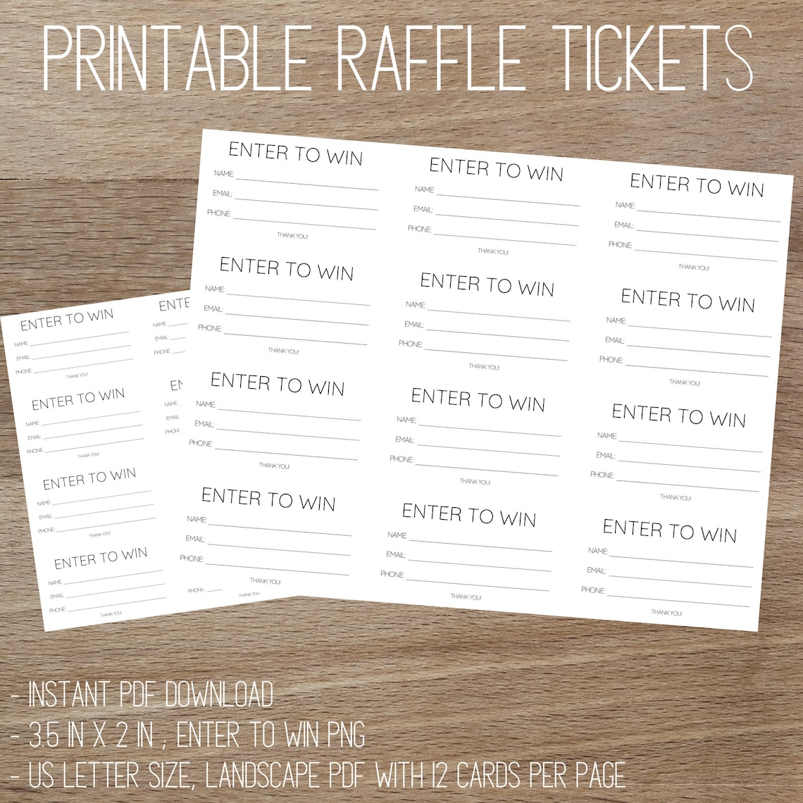 Minimalist Raffle Tickets: Enter to Win Template (printable PDF) Etsy