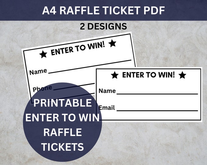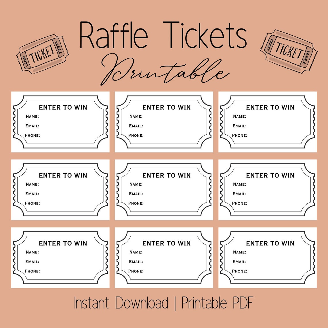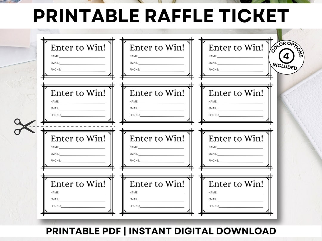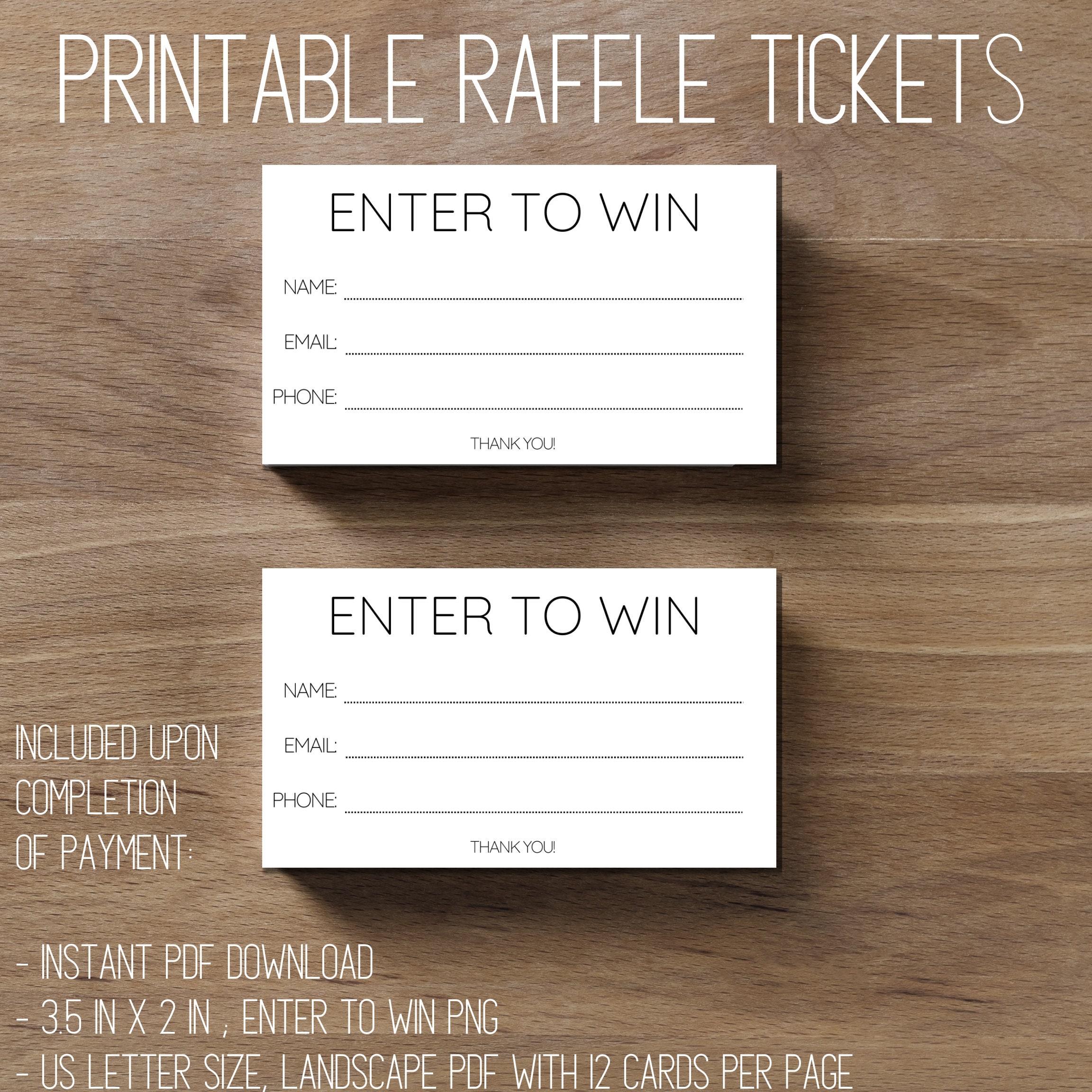Printable Raffle Ticket Enter to Win Printable Ticket Etsy
