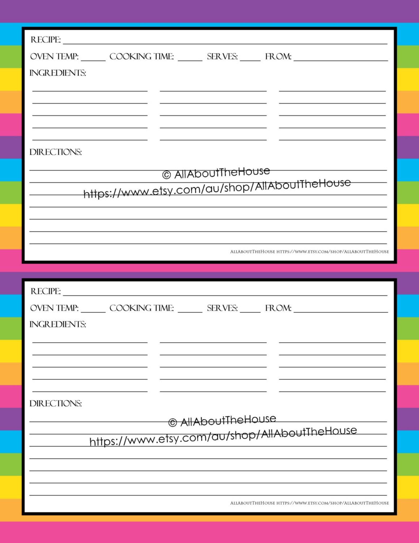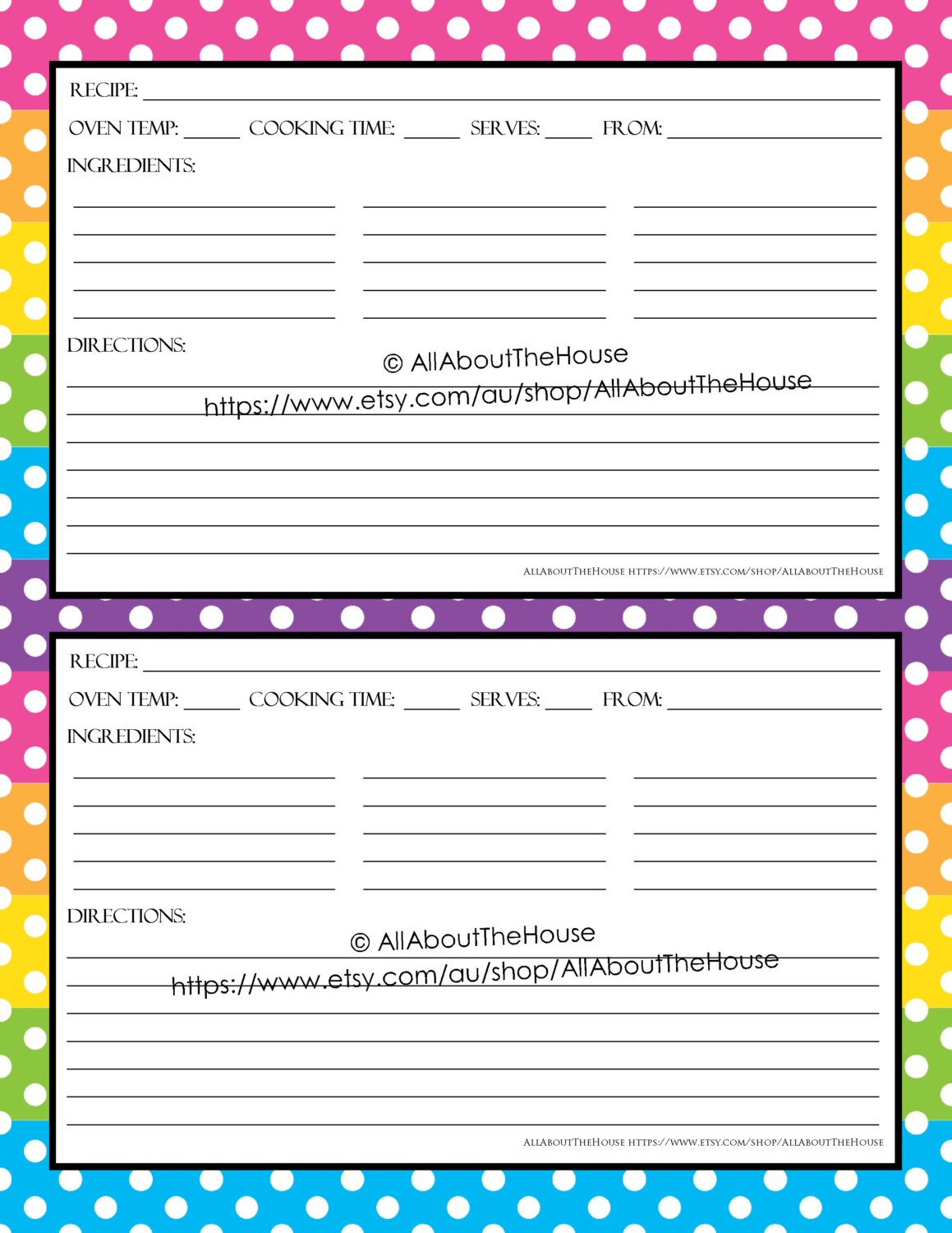 Recipe Card Printable Pdf Etsy