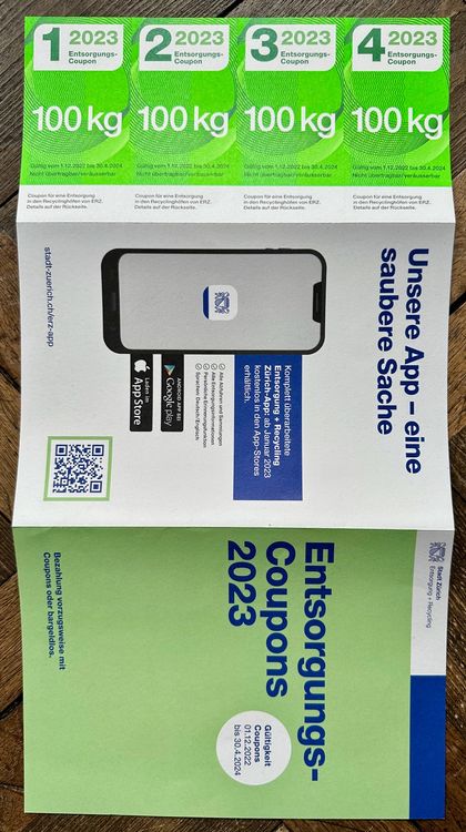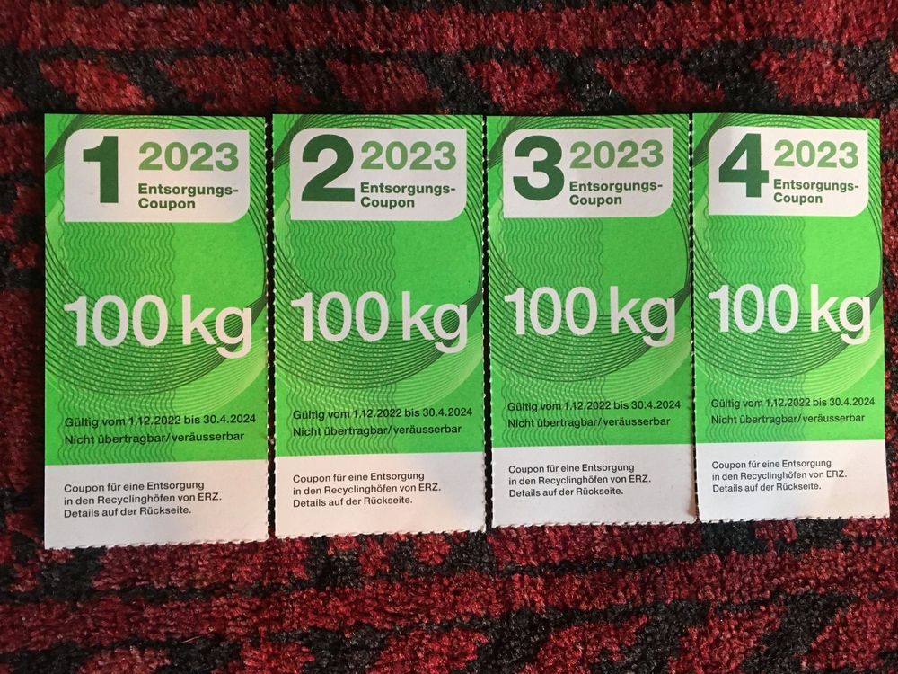 Stadt Zürich Entsorgung Recycling Coupons 2023 4 x 100kg (Neu (gemäss