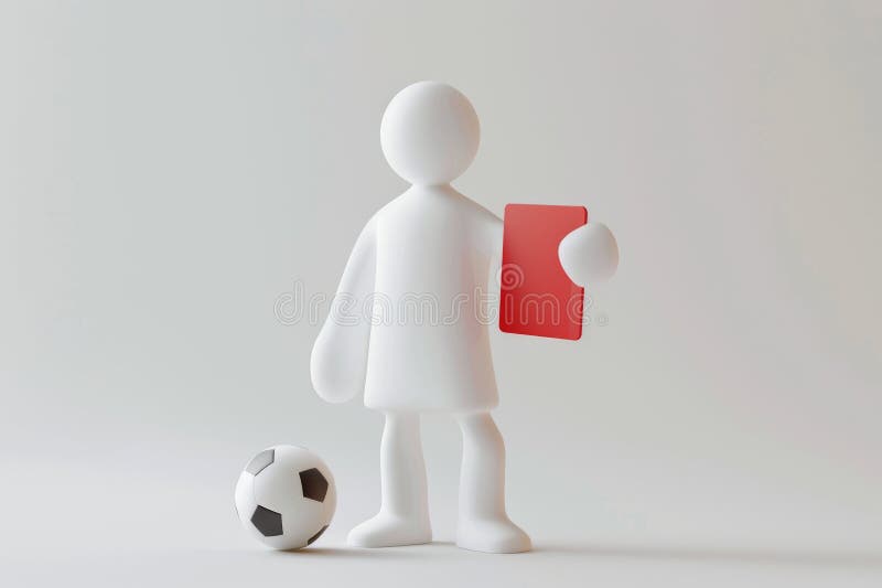 3D White Figure Holding Red Card and Soccer Ball Generative AI Stock