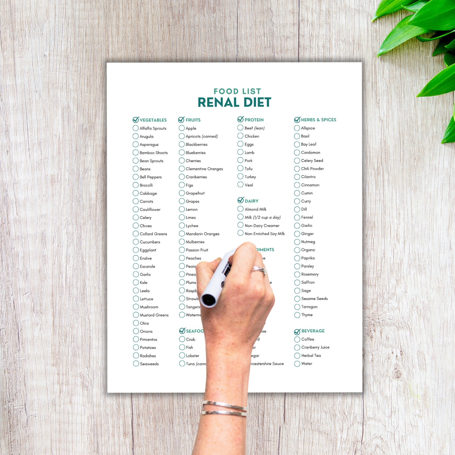 Renal Diet Food List Checklist: Printable Kidney Disease Food List