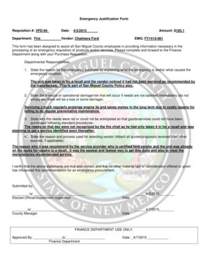 Fillable Online Emergency Justification Form Requisition #: VFD94 Date