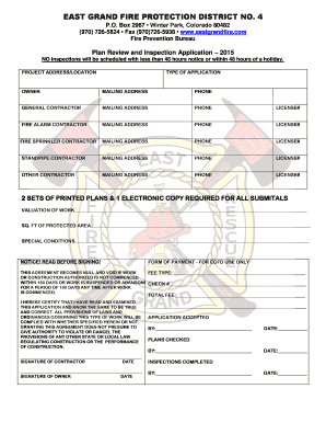 Fillable Online Plan Review and Inspection Application 2015 Fax Email