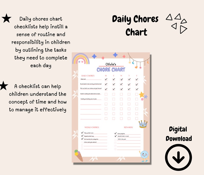 Chore Chart Printable for Kids Daily Chores Template Editable Chore