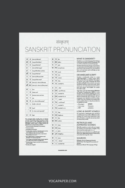 Sanskrit Alphabet and Pronunciation Guide Yoga Paper