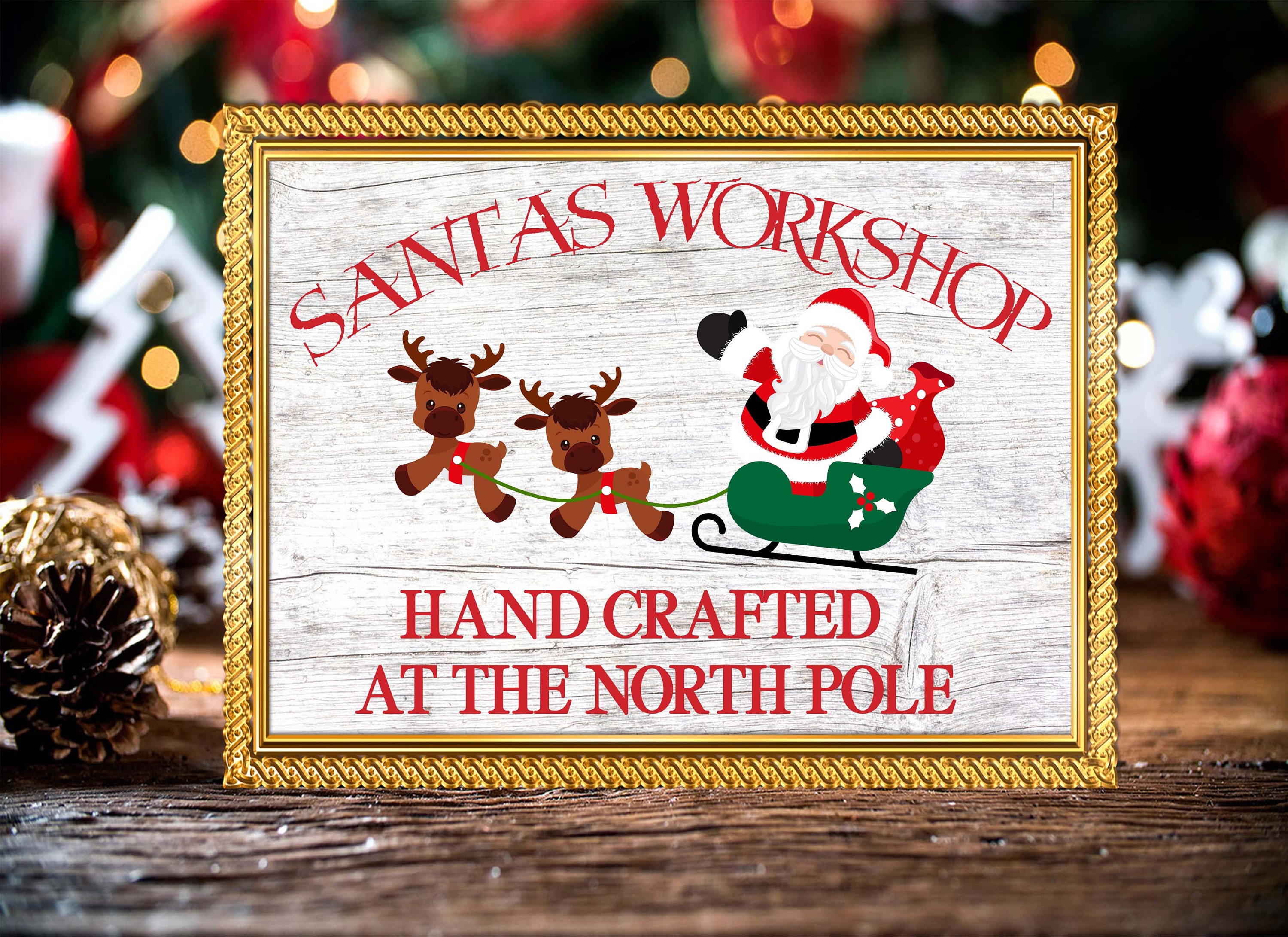 Santas Workshop Sign Christmas Party Santas Workshop Christmas Sign