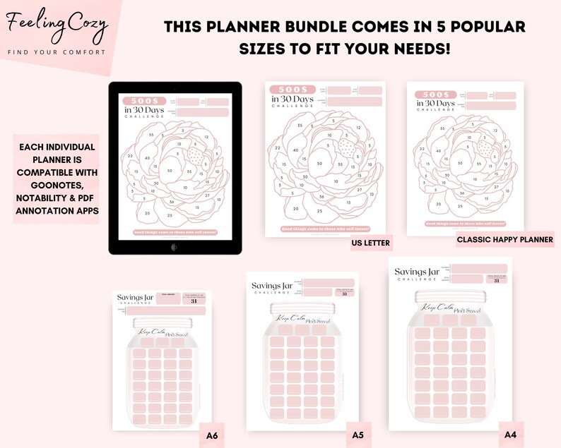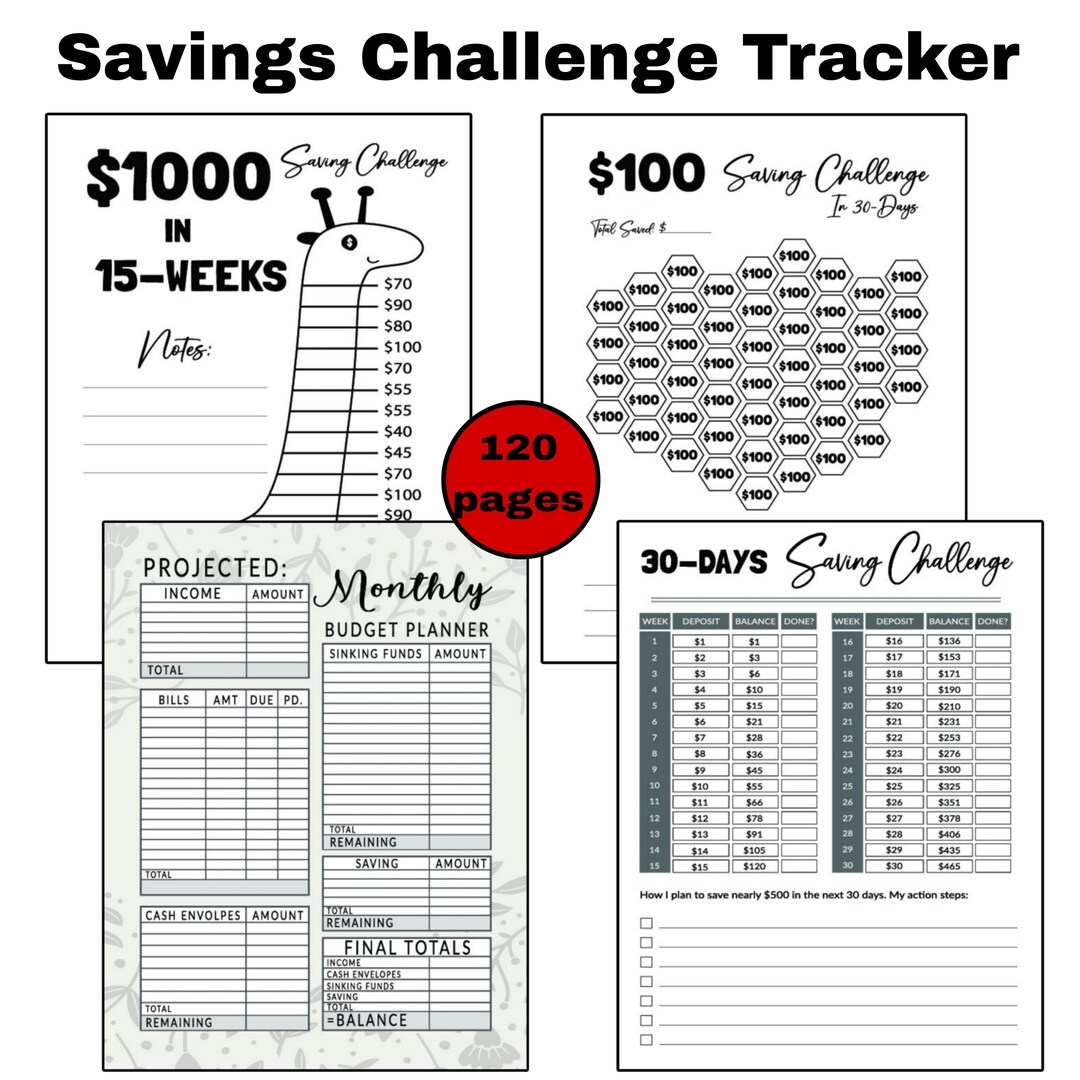 PRINTABLE Savings Challenge Tracker Bundle 4 Budgeting Etsy