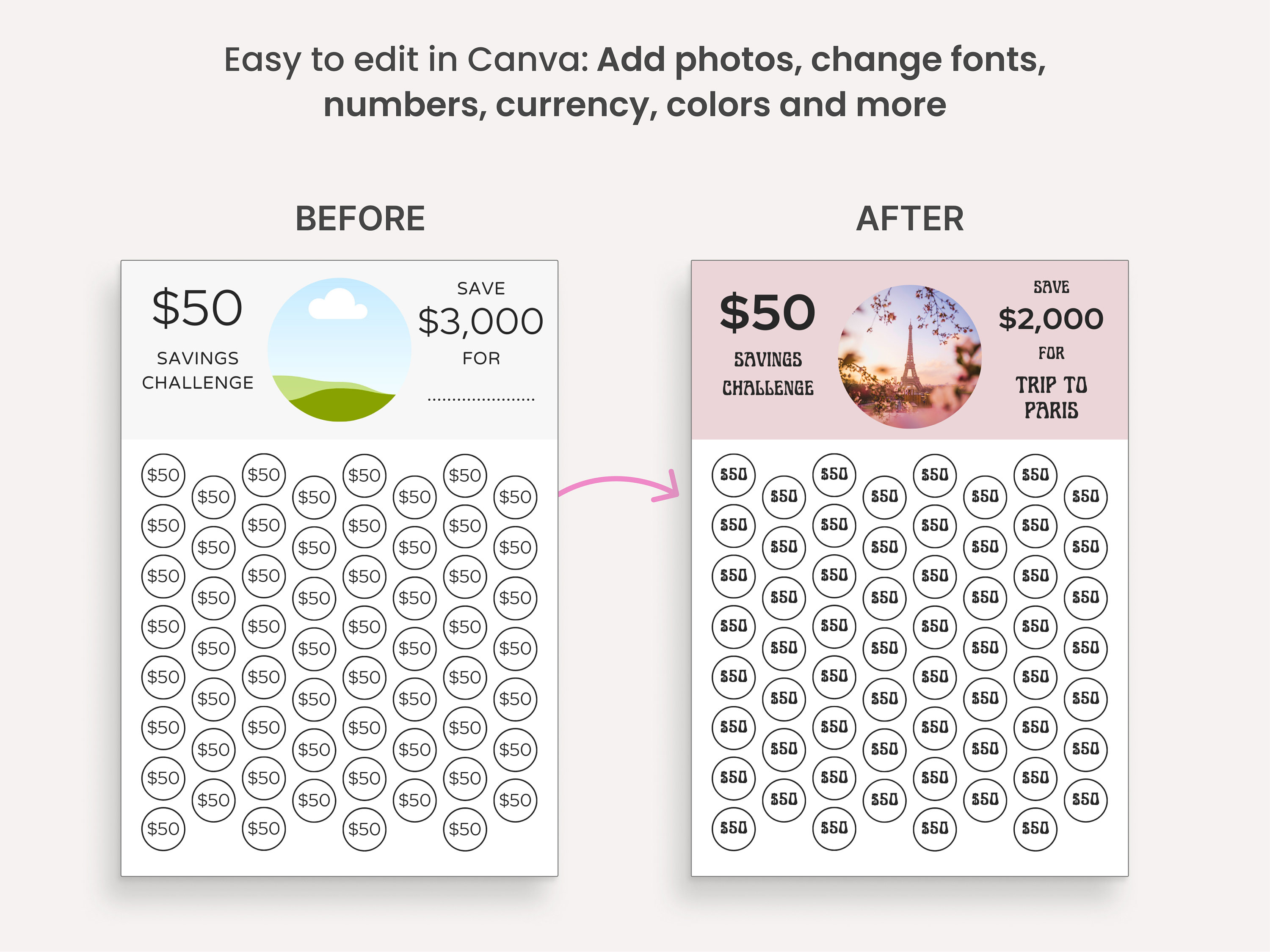 Savings Challenge Printable Savings Tracker Bundle Editable Template