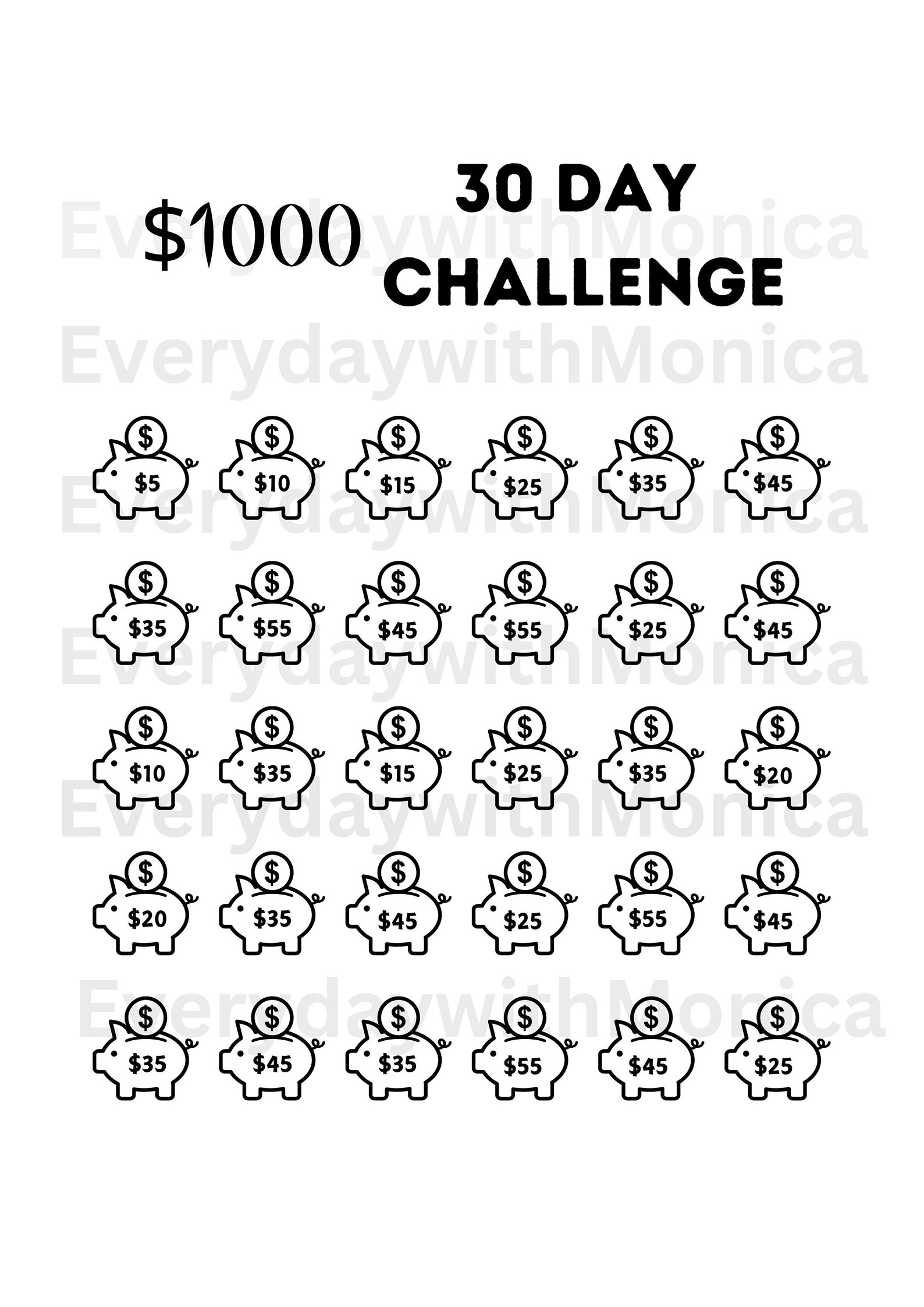Savings Challenge Printable Template Budget Tracker