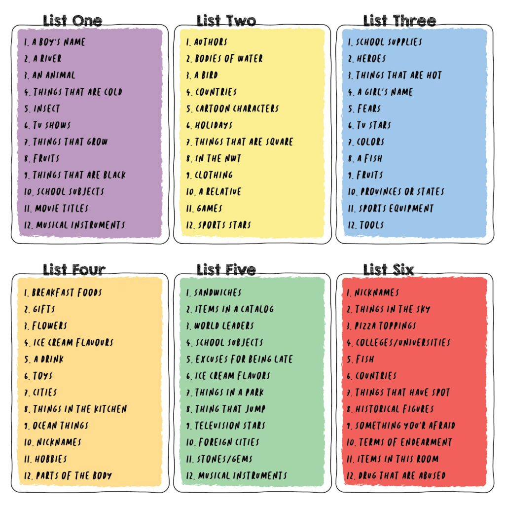FREE Printable Scattergories Lists Instant Download 49% OFF