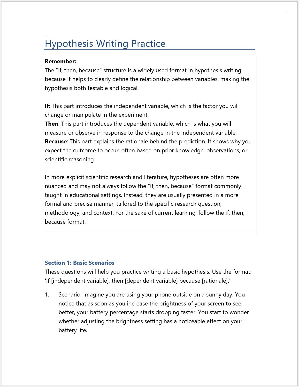 Hypothesis Writing: Scientific Method Worksheet Teaching Resources