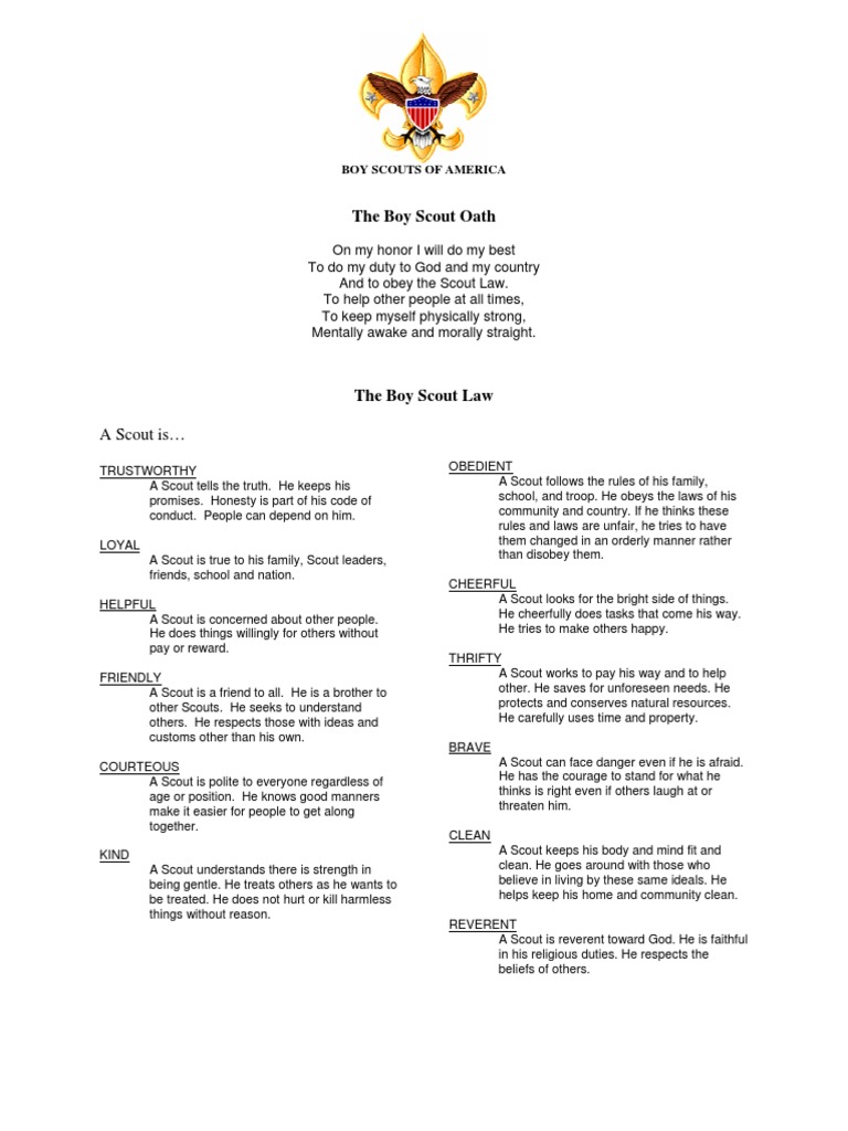 Boy Scout Oath Boy Scout Law PDF PDF Boy Scouts Of America Scouting