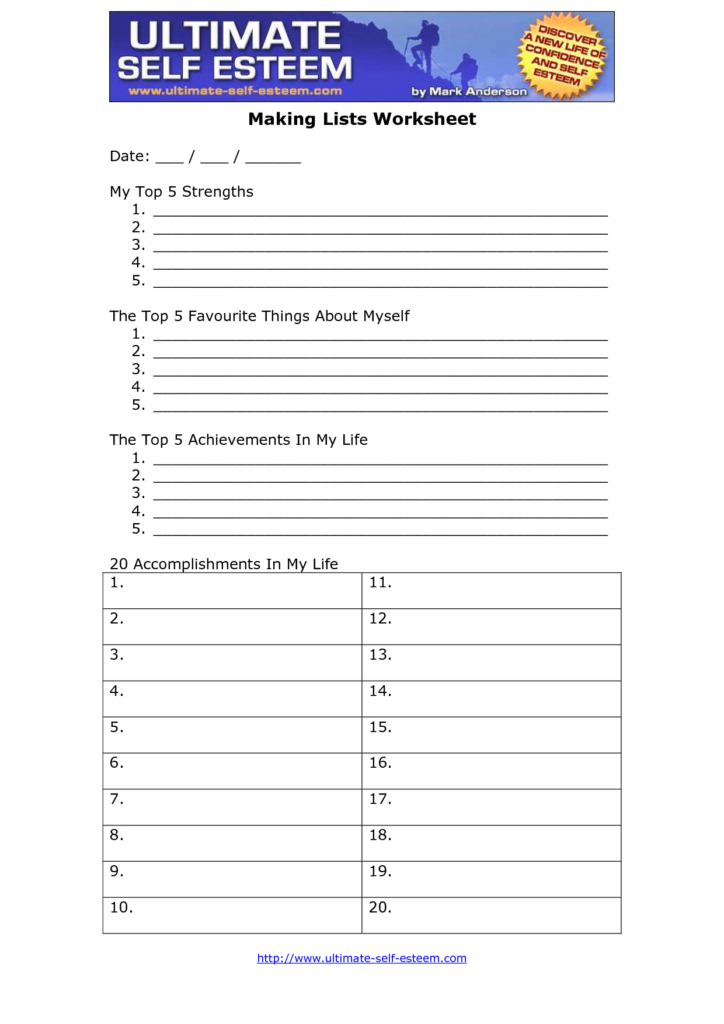 Here are some of the images for Printable Self Confidence Self Esteem Worksheets For Adults that we found in our website database.