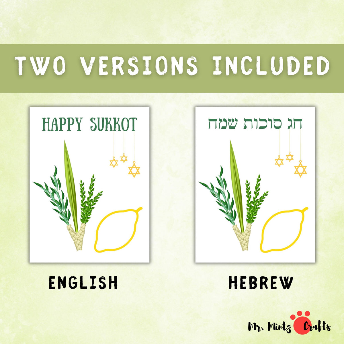 Printable Sukkot Decor Handprint Four Species (Lulav Etrog Myrtle