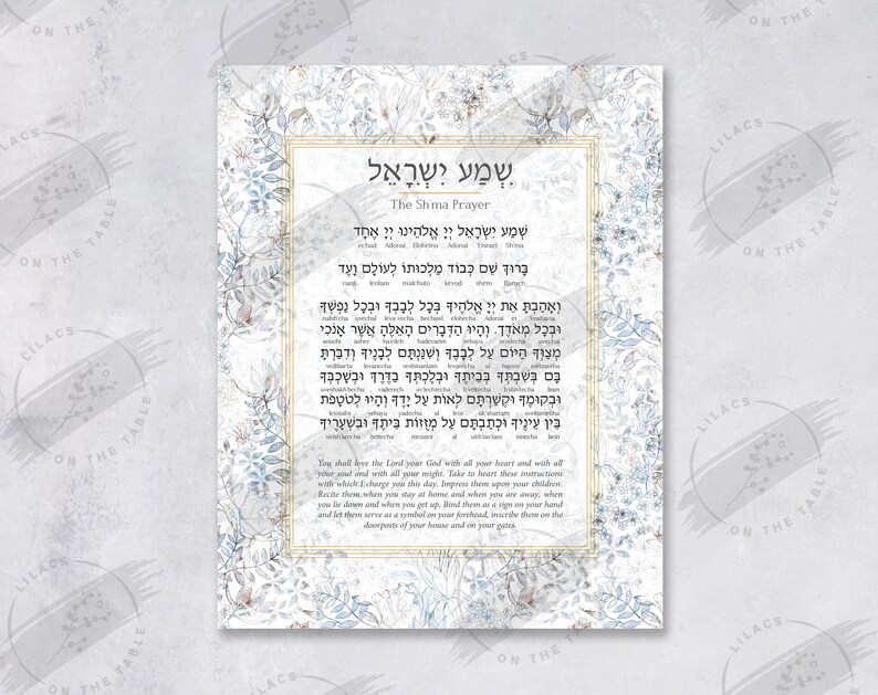 Shema Israel Prayer Printable Wall Art Hebrew and English Typography