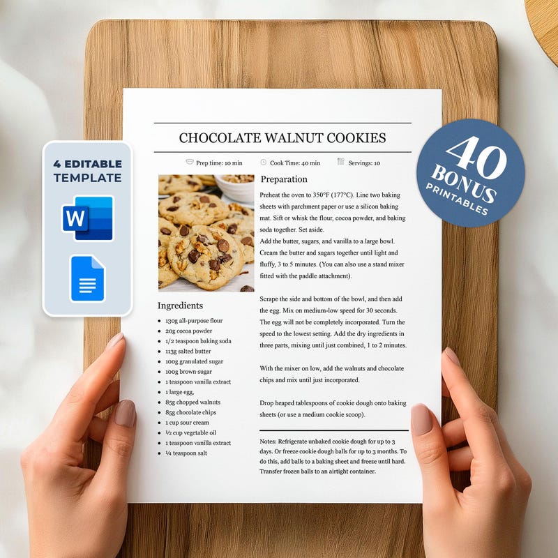 Recipe Template in Microsoft Word Etsy