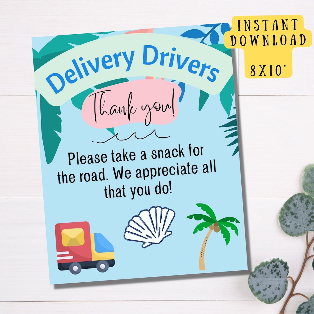 Printable Delivery Driver Snack Sign Thank You Delivery Drivers