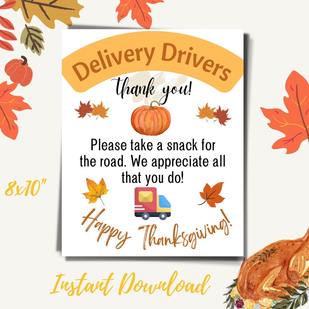 Printable Delivery Driver Snack Sign Thanksgiving Mail Carrier